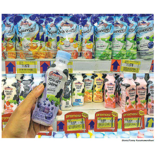• Cimory Skyline – Yoghurt minum dengan kemasan modern dan rasa kekinian seperti blueberry, strawberry, dan mango. Dikemas dalam botol transparan, produk ini menonjol di rak minimarket.