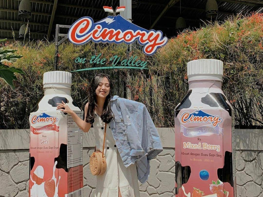 • Berfoto dengan latar belakang alam dan karakter Cimory.